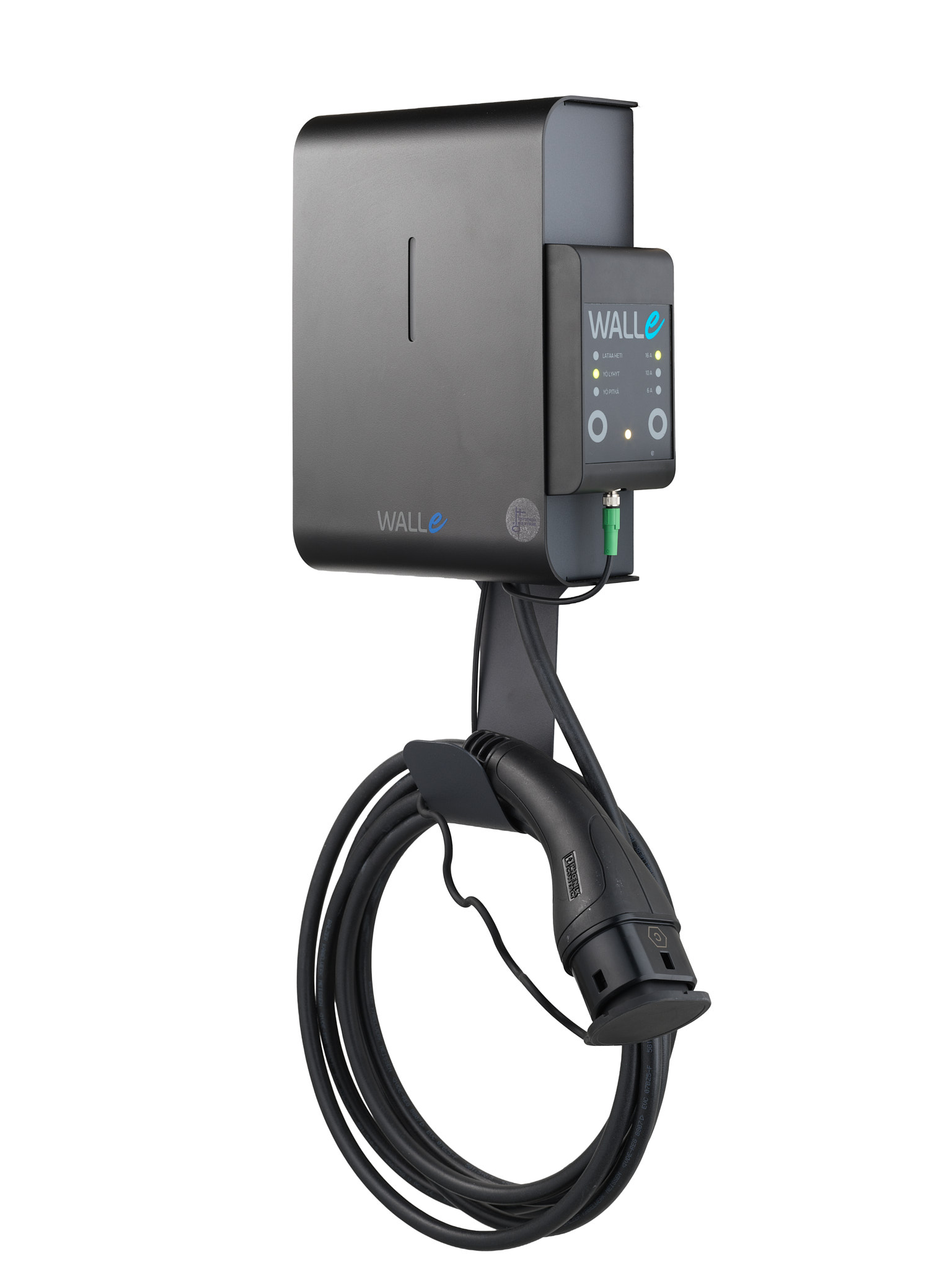 Walle 16M sähköauton latausasema, joka sopii käytettäväksi kaikkien ladattavien sähköautojen kanssa. Se sisältää kiinteän Type 2 latauskaapelin, sekä langattoman kuormanhallinnan. Helppo asentaa ja käyttää. Kuormanhallinnan lähetin ei tarvitse erillistä internet yhteyttä.